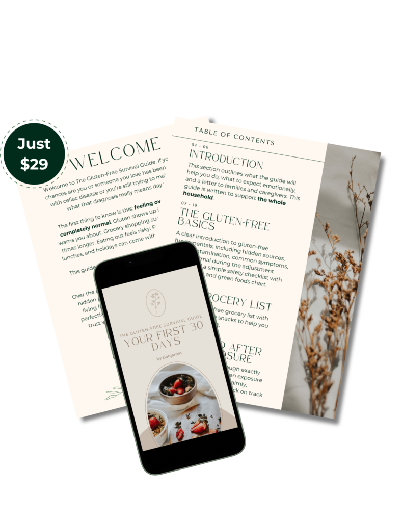 For the past 9+ years, I’ve been navigating celiac in my own home. My wife and son both have it, and I’ve been one of the main people figuring out how to shop, cook, and keep our kitchen safe. I’ve tested the foods, made the mistakes, and learned what actually works (and what doesn’t). So instead of second-guessing every label, feeling overwhelmed at the store, or hoping you’re doing it right. You get a simple, clear plan to follow — so you can feel confident with food from day one.
